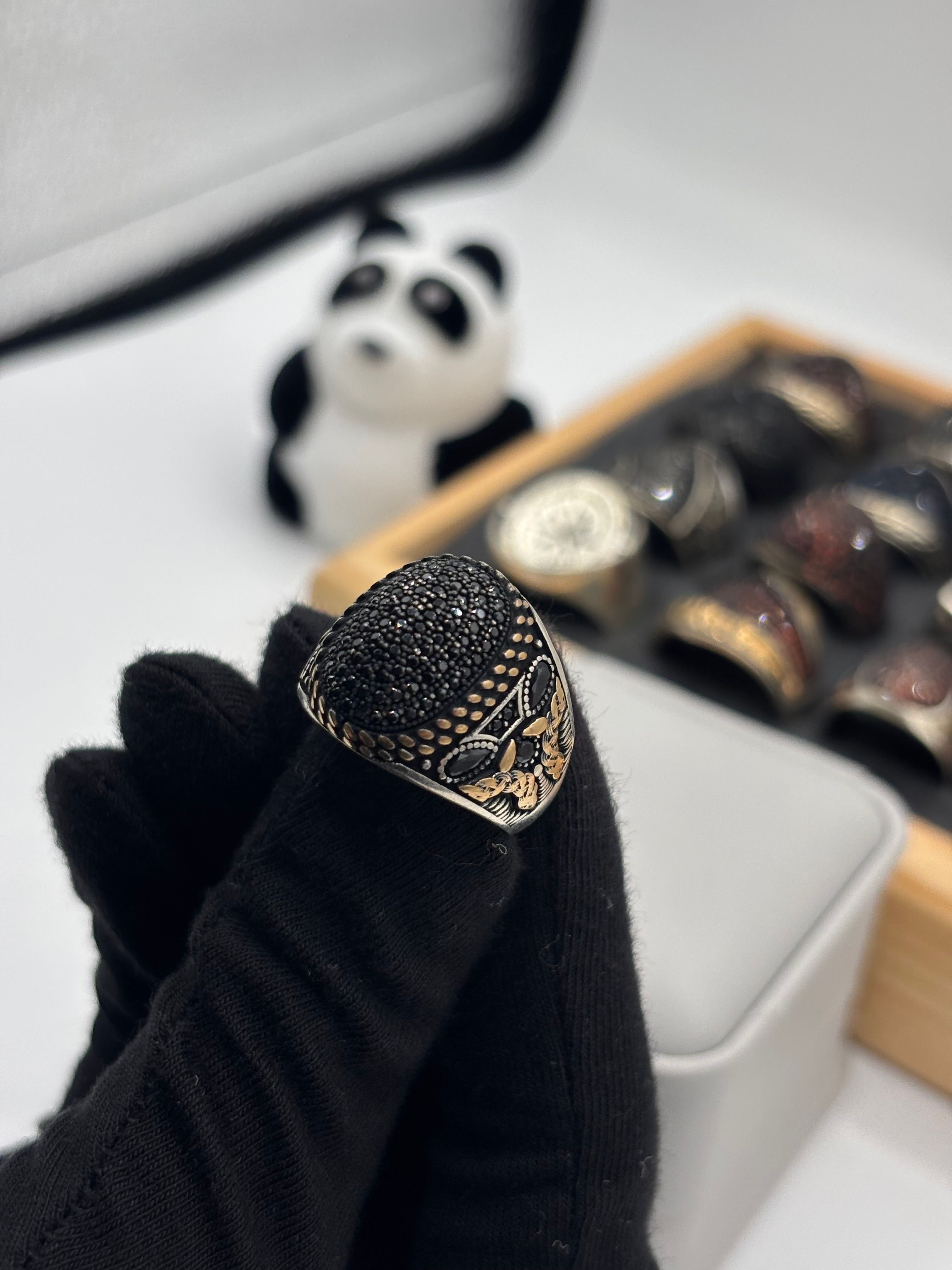 modele silver -5411- خاتم فضة رجالي مرصع باحجار سوداء