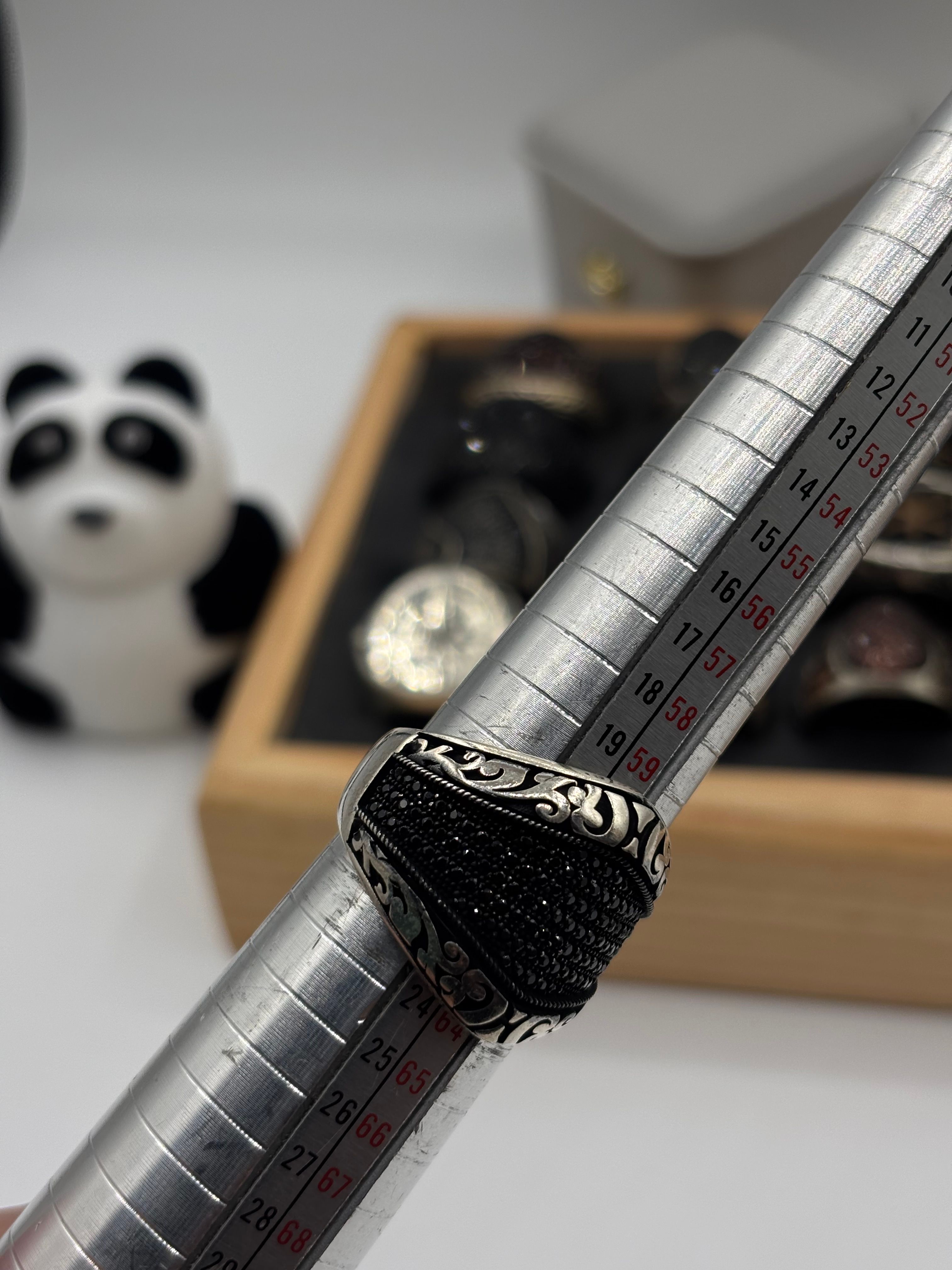 خاتم فضة رجالي مرصع باحجار زرقاء