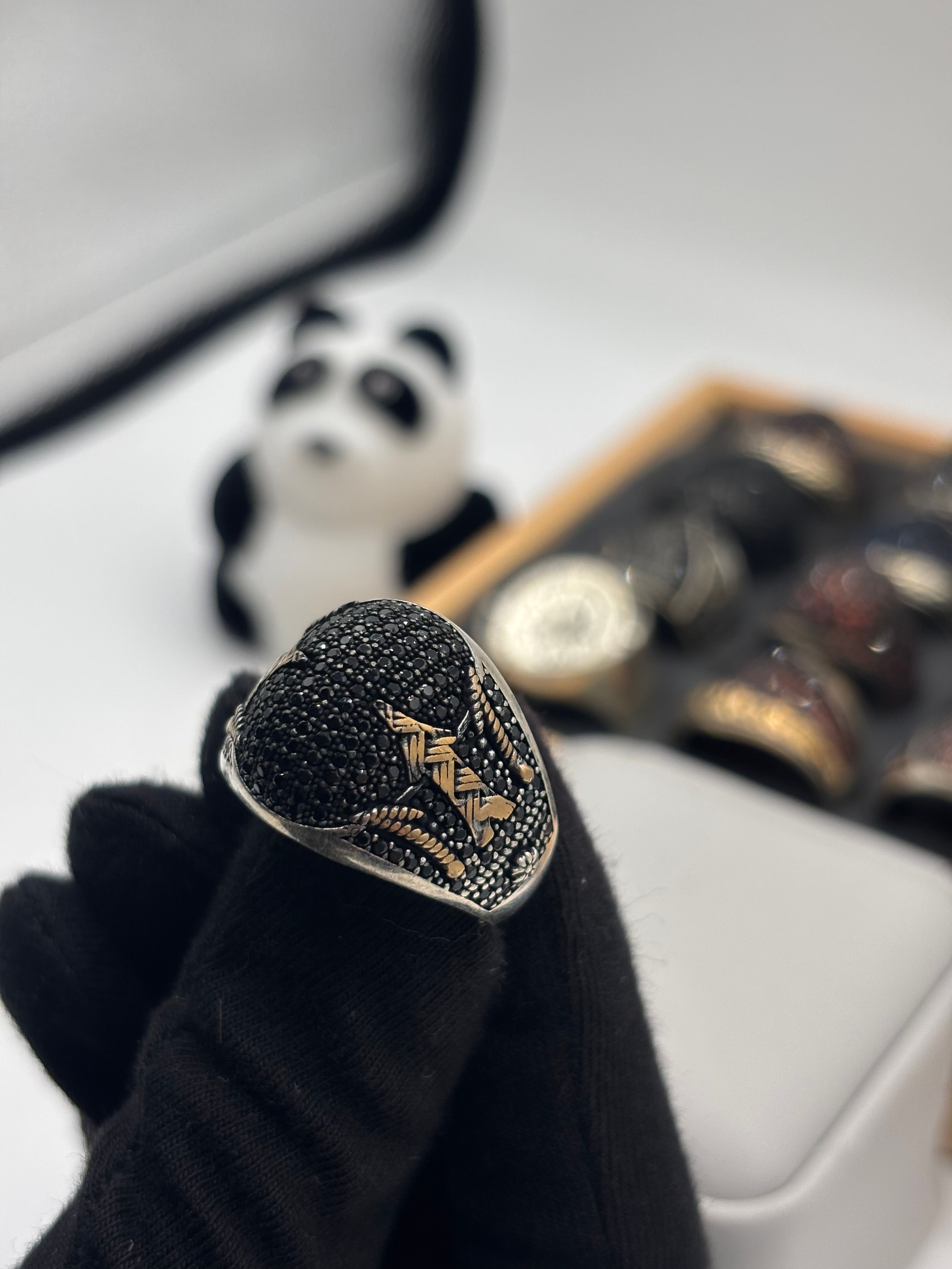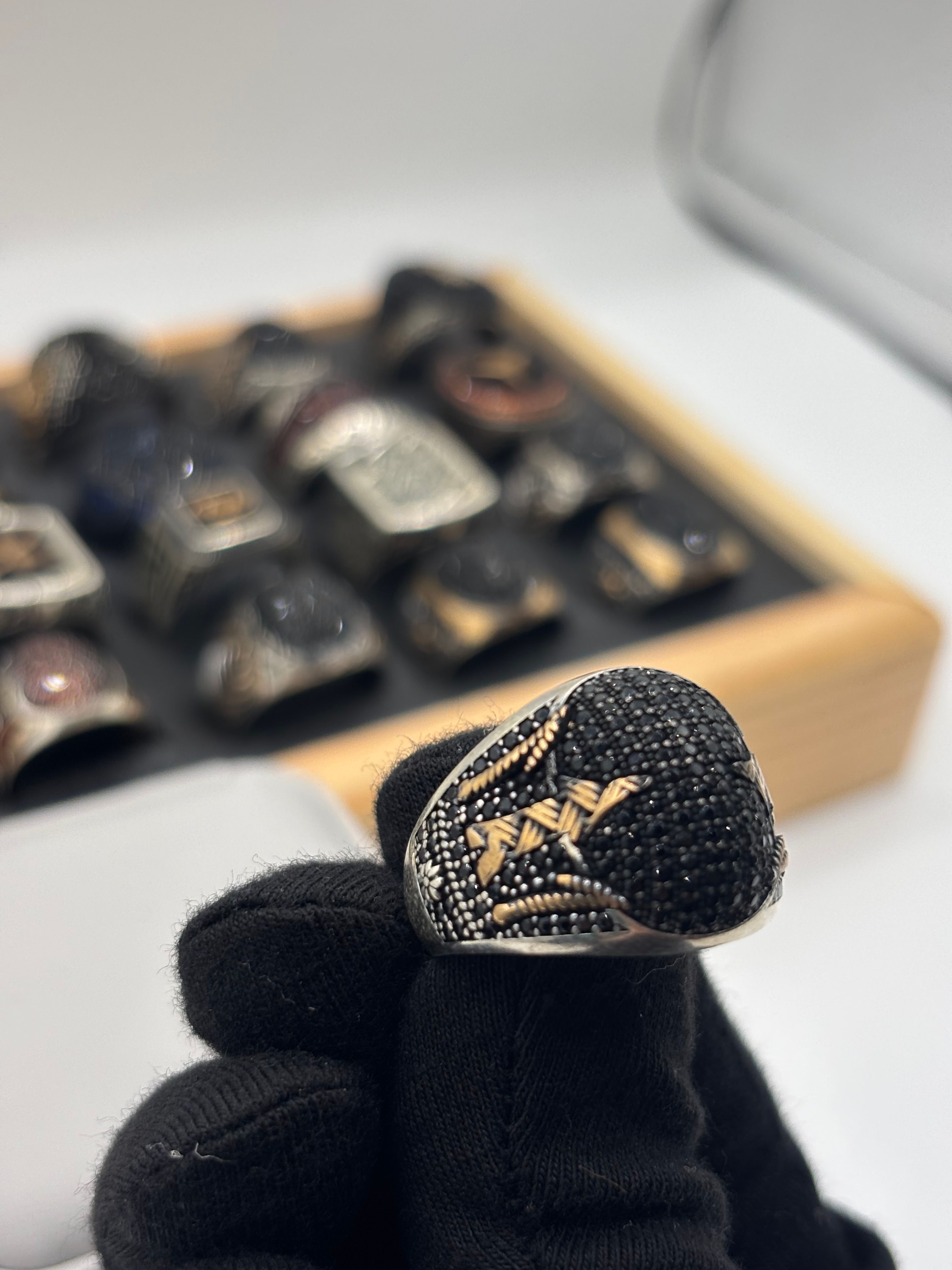 modele gold -1- خاتم فضة رجالي مرصع باحجار سوداء