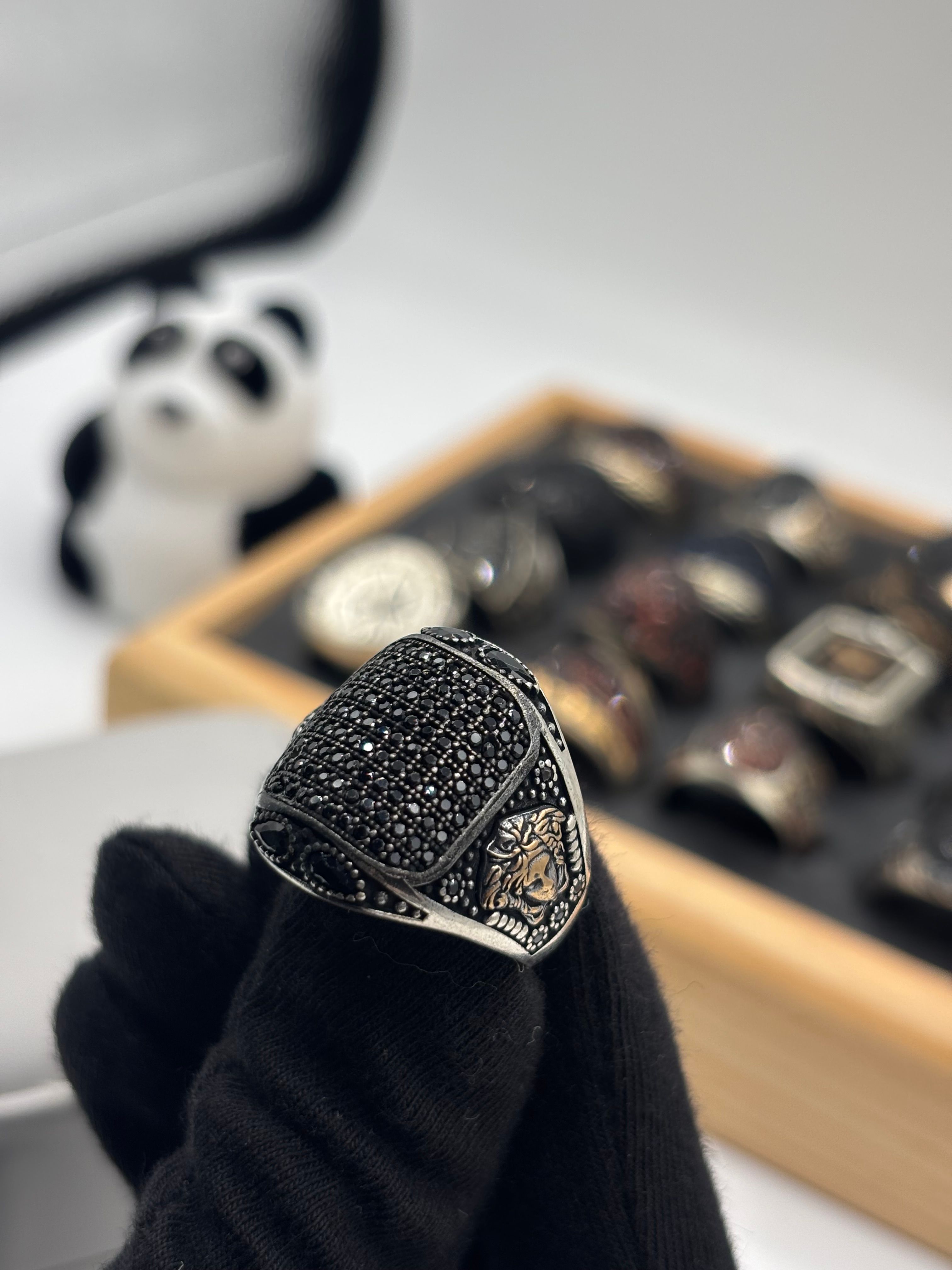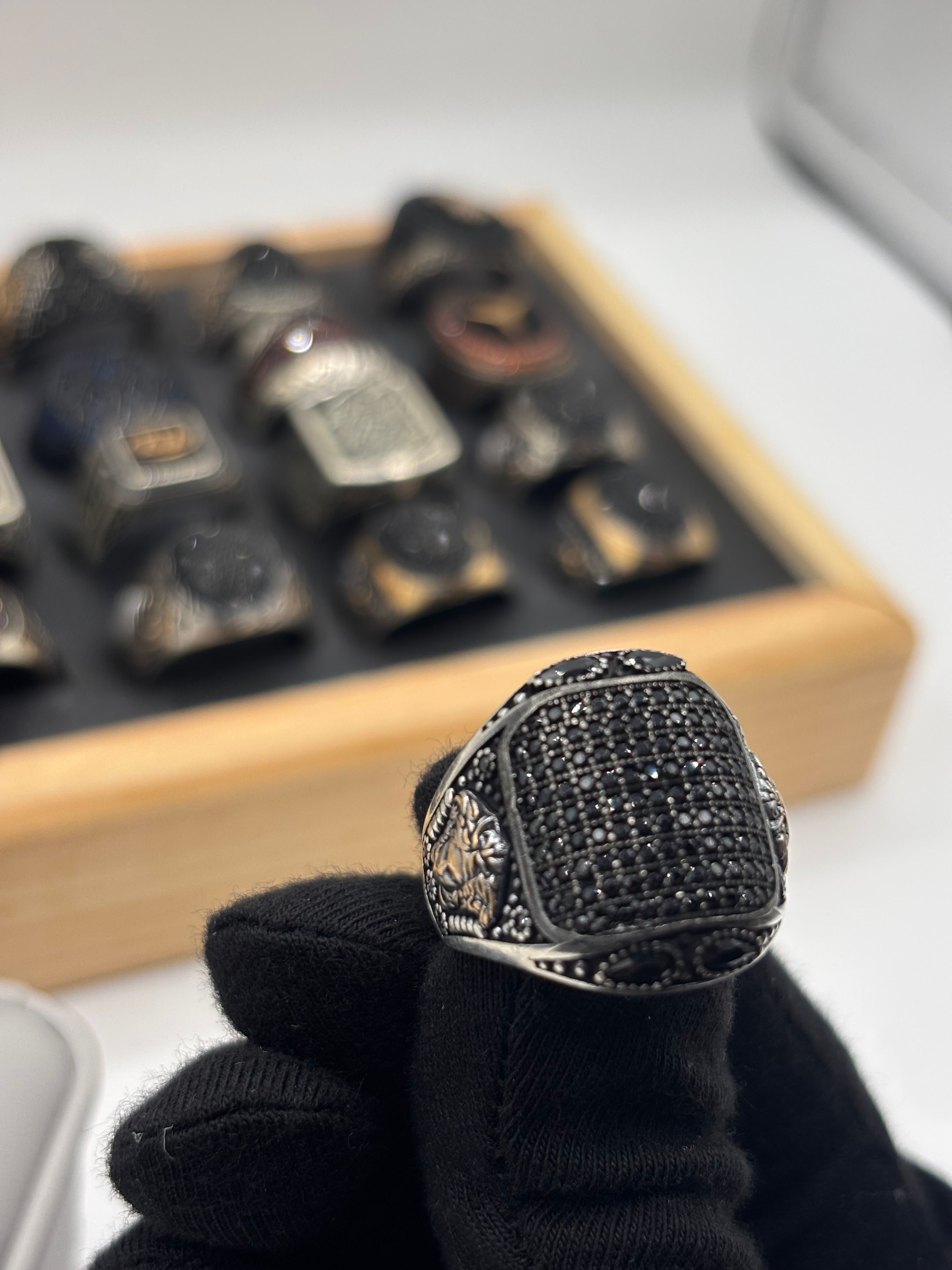 modele 722 خاتم فضة رجالي مرصع باحجار سوداء